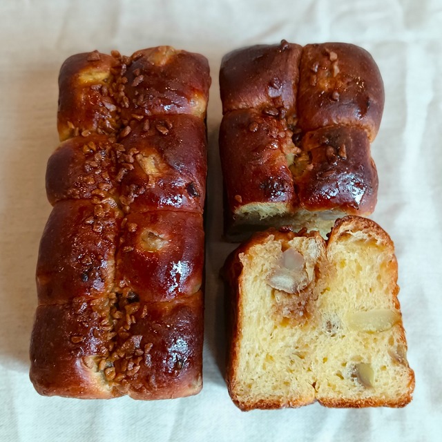 \ パンには珍しい!100g単位の量り売り商品です / 季節限定商品 栗好きの皆さんに贈る 宮崎県産の渋皮栗とそのペーストと共に、ほっくりとした甘露煮も入っています。 くり・クリ・栗づくしな逸品! 温かいお茶を用意して、こたつに入って、この冬は乗り越えられそうです。 ==購入方法== ・100g単位でのご用意となりますので、ご希望のグラム数で数量を指定してください。 例:100g→数量『1』、300g→数量『3』、500g→数量『5』、など ※100g=およそ2〜3切れ程度となります ・他の商品と同時購入は可能ですが、ボリュームによっては送料が変更となる可能性があります。 セット商品と併せてのご購入や、2本以上をご購入予定の場合は事前にお問い合わせをお願い致します。 ==ご利用条件== ◆配送方法 クロネコヤマトのクール便(冷凍)にてお届け致します。 ◆本商品に限りスライスでのご用意となります 通常はどの商品もブロック(塊)のままで梱包させて頂いております。 しかし、本商品は”量り売り”となるためスライスでご用意をさせて頂きます。 お召し上がりの際には、自然解凍の後にそのままお召し上がりいただくか、もしくは軽く焼き戻ししてお召し上がりください。